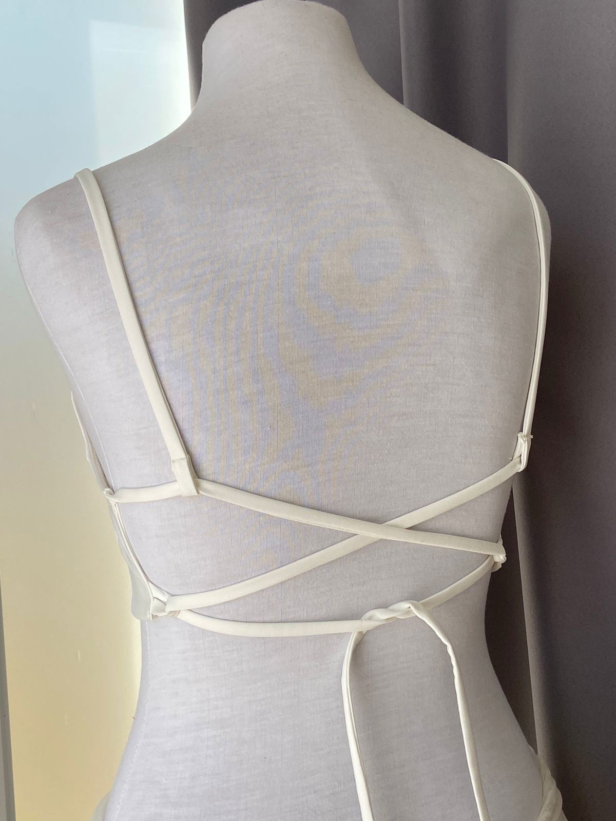 Top escote en V confeccionado en crep Zara con forreria y pinzas dior que resaltan la silueta, espalda y breteles ajustables.